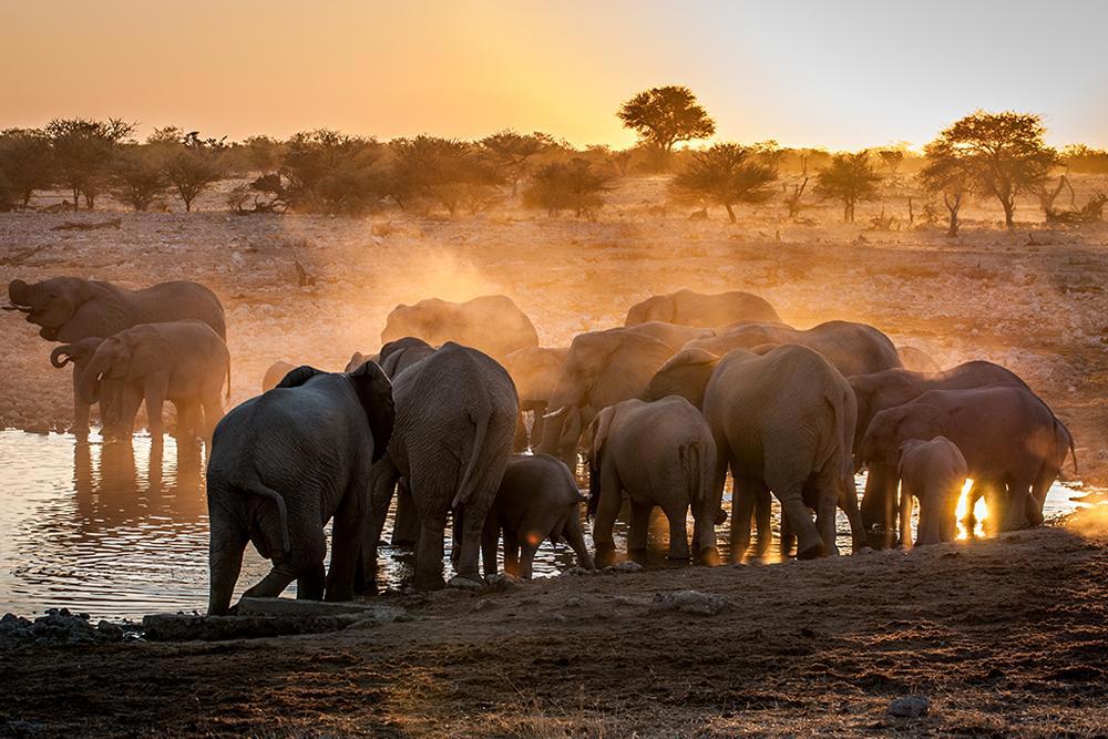 Pequeno-almoço. Desfrute de mais um dia a explorar o Parque Nacional de Etosha (em veículo fechado). O espetáculo começa com o nascer do dia, altura em que centenas de animais se juntam para matar a sede no charco permanente desta área de Etosha. A interação entre as diferentes espécies continua até ao sol se pôr e não é difícil colocar na mesma fotografia um elefante, um leão e um rinoceronte a beber água lado a lado. Perceba através das explicações do guia como é que é possível gerir um dos maiores santuários da vida selvagem no mundo. Regresso ao lodge durante a tarde. (Opção + Refeições: Jantar). Alojamento.